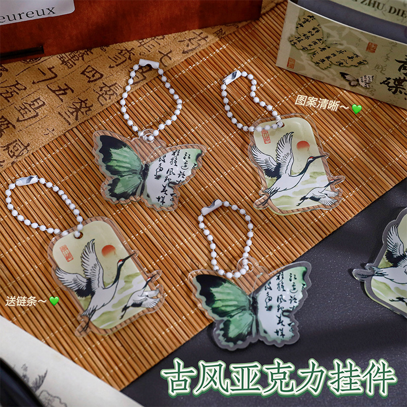 古風蝶キーホルダー新中国式レトロ国風キーホルダー創意バッグ筆袋飾りストラップ