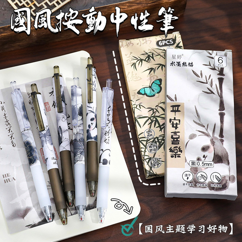 クリエイティブ中国風押し中性ペン高颜値学生STペンブラシ問題ペン0.5mm試験黒水筆