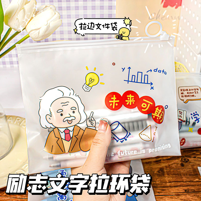 漫画の有名人のシリーズの指輪の袋の励ましの志の文字のファスナー式の書類の袋の学生の透明な防水の文房具の収納袋