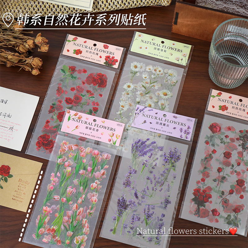 クリエイティブ花卉シールチューリップ手帳シールPETレトロ植物貼り画造景底装飾素材貼り