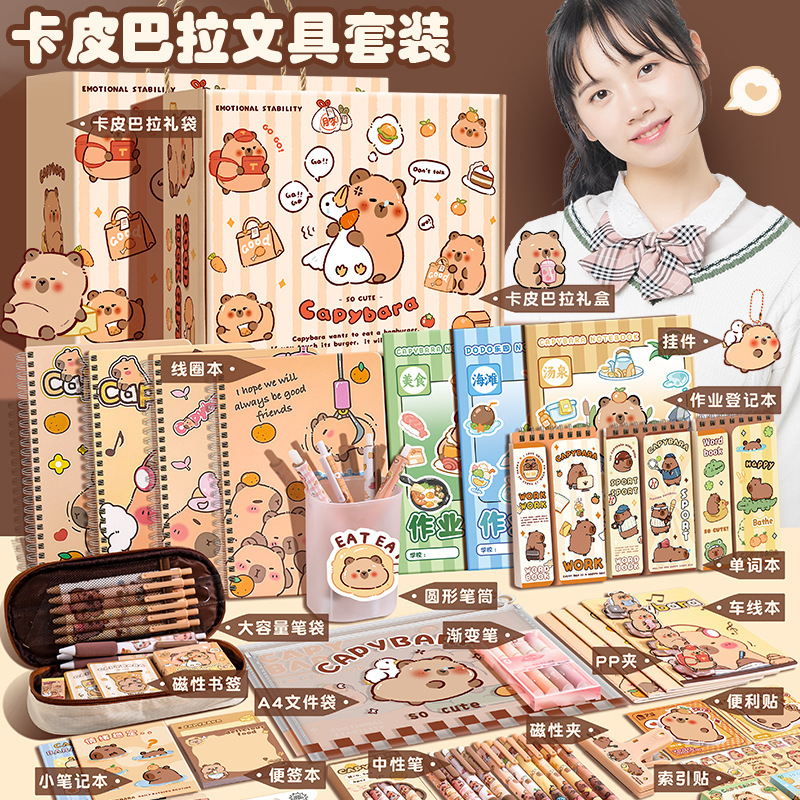 カピバラ文房具セットギフトボックス高颜値サプライズブラインドボックス子供诞生日プレゼント学生文房具ギフトバッグ