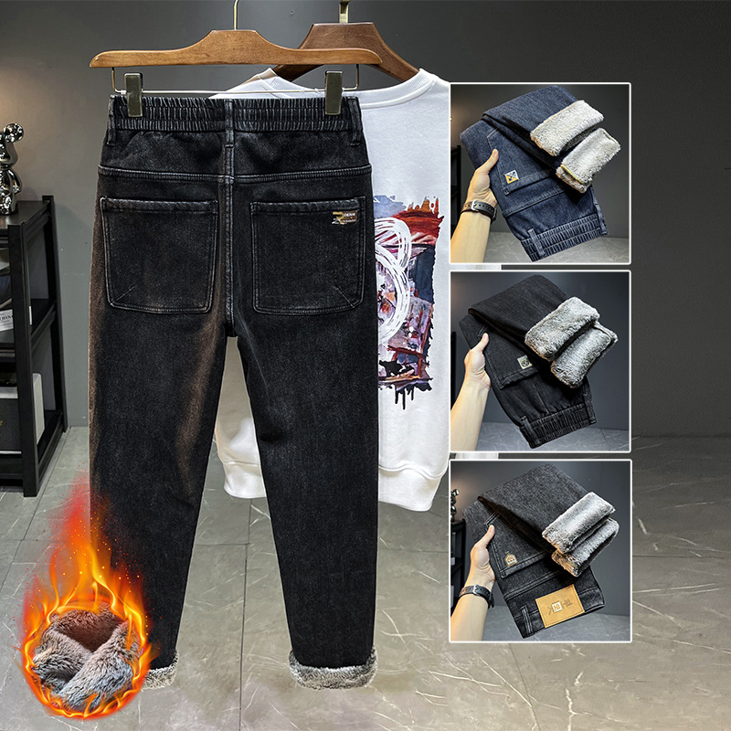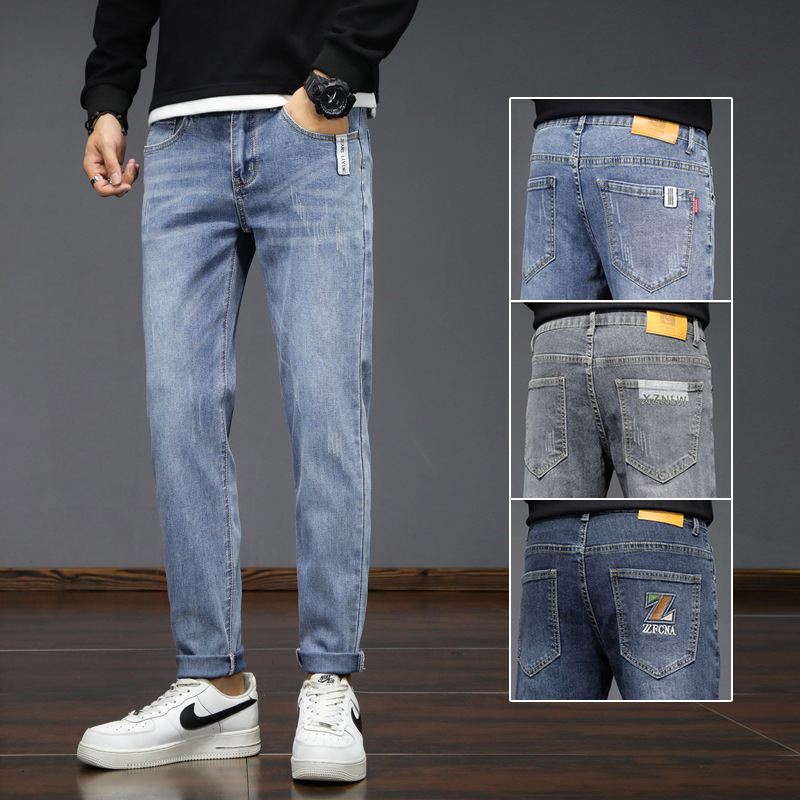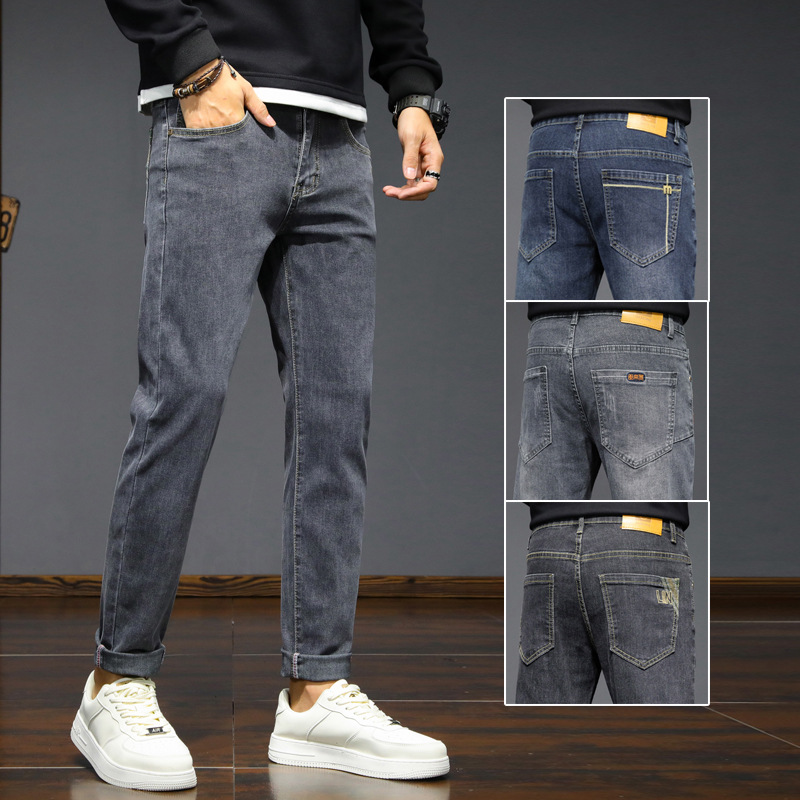 2024新型カジュアル男性長ズボン秋冬ファッション百合韓版弾力修身小足ジーンズ男
