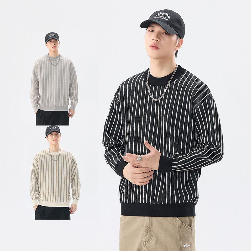 クロスボーダーの新型男性丸首長袖ゆったりセーター秋冬メンズ純色厚手保温プルオーバー