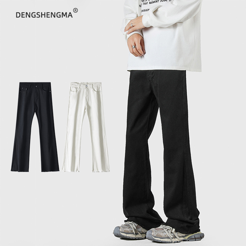新型メンズ高級感カジュアル長ズボン四季黒と白の潮牌流蘇弾力修身デニムのラッパズボン