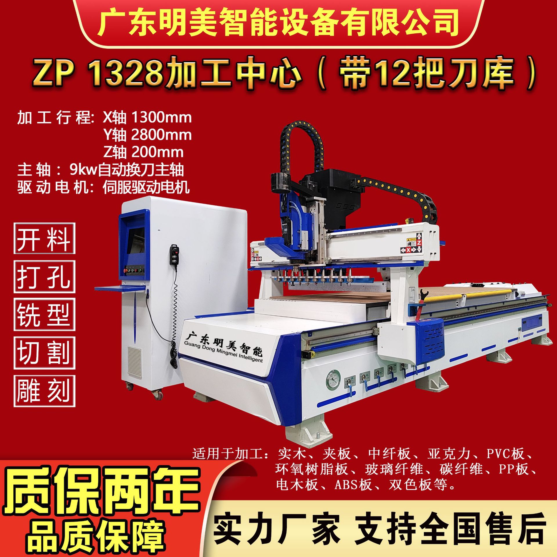 1328自動刃交換nc開機多層板密度粒板加工センター大容量刀庫切断