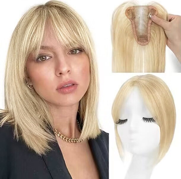 Women's100 % HumanHairTopMonoTopWigHairPiecesBleachedBlondHair