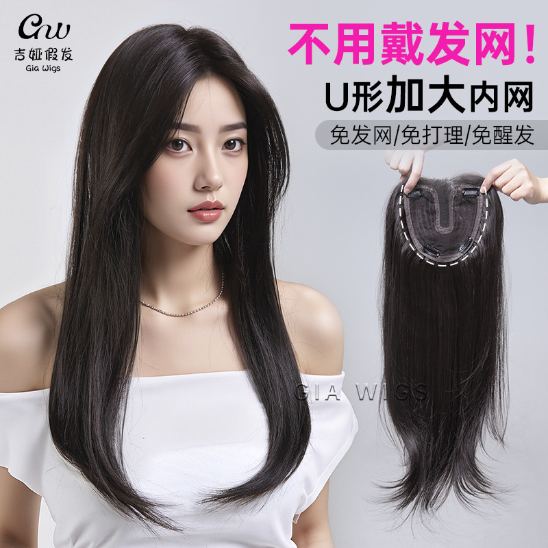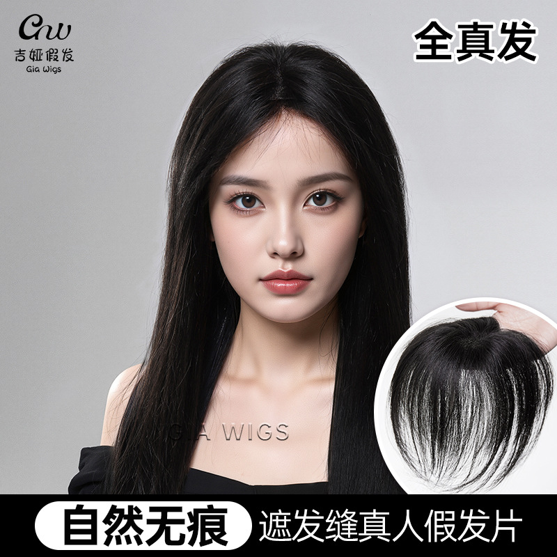 全真髪モノネット自然黒頭頂がげています。白髪を補います。自然に跡のない額で前髪を補います。
