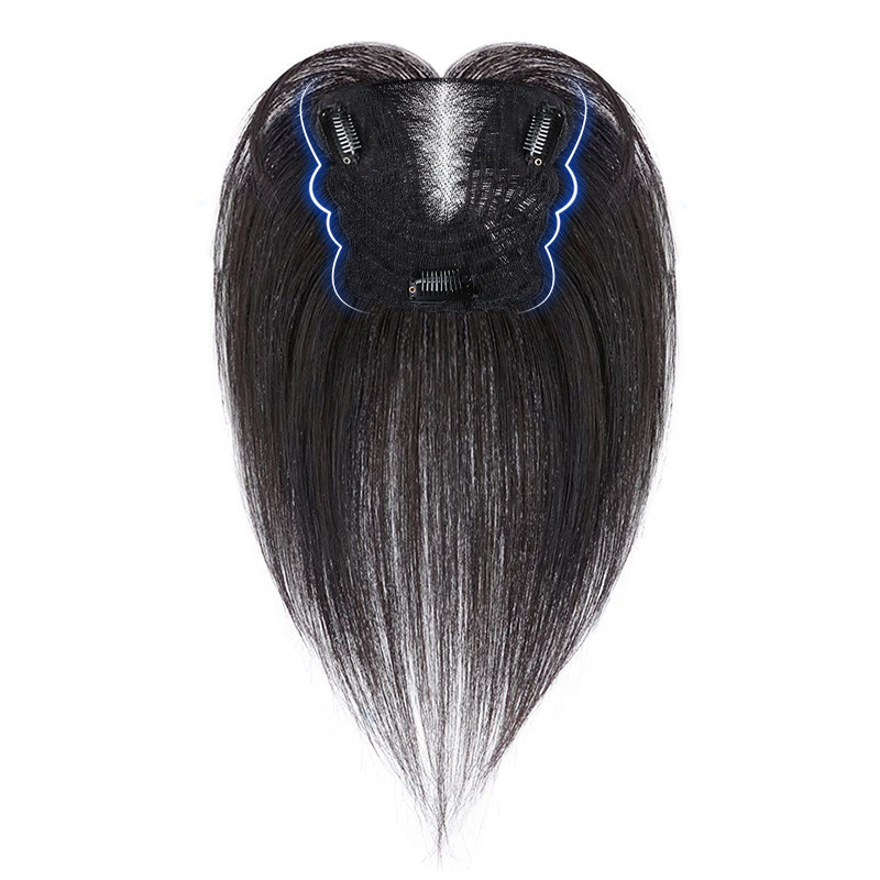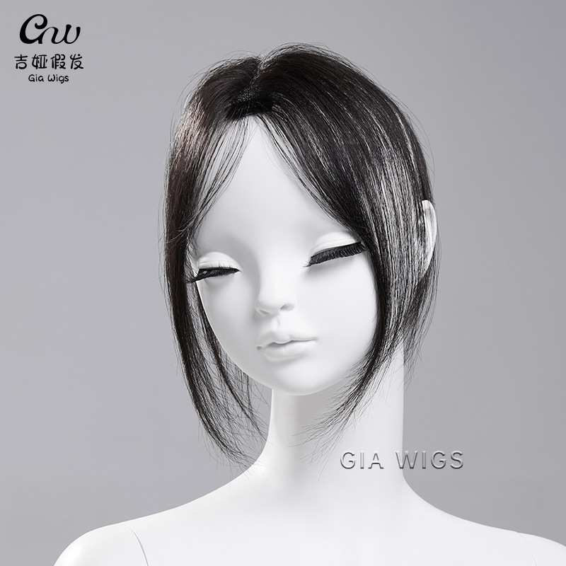 前髪かつらの女性の真髪の自然な額の見えない八の字がふわふわしています。