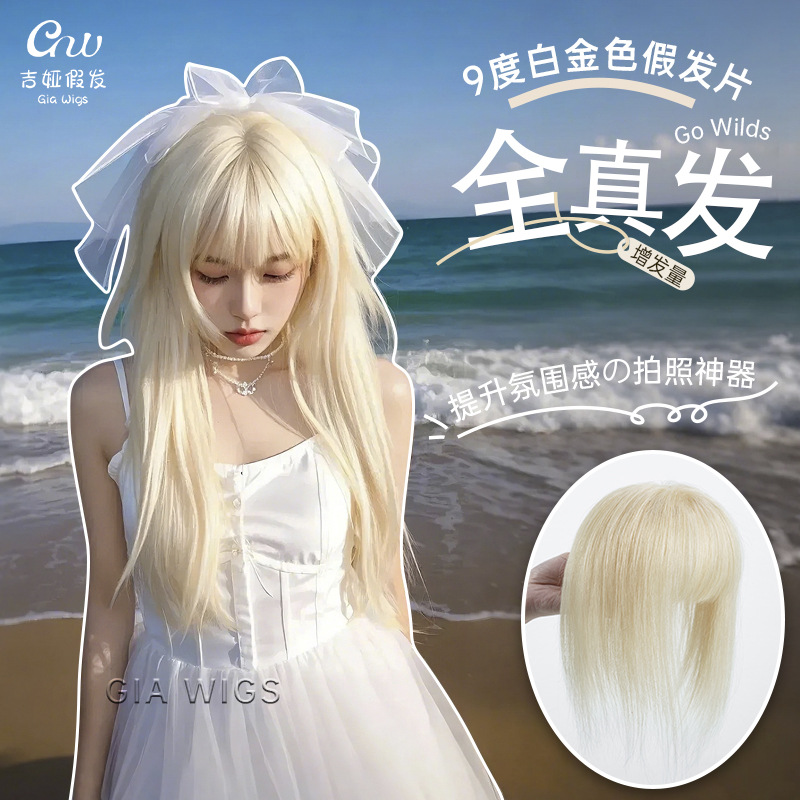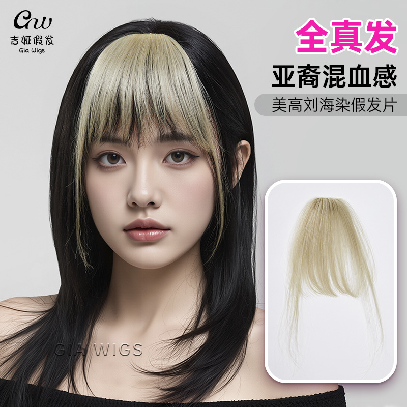 アジア系混血感前髪染め米金挑染前髪かつら女全真髪前髪前髪髪片y 2kギャル