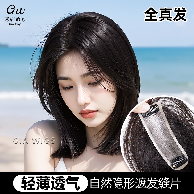 本物のかつらの女性は髪の縫い目が薄くて、通気性があります。