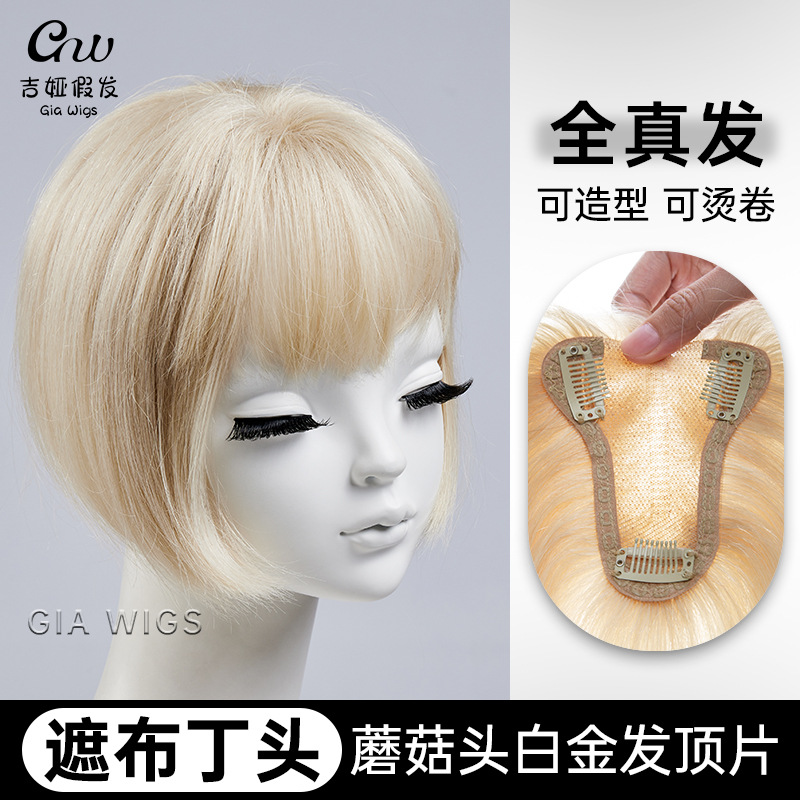 Giawigかつらプラチナプリンの髪のかつら9度の色の高い首の頂の本当の人の髪の切れの頭の頂は切れの女性を補います。