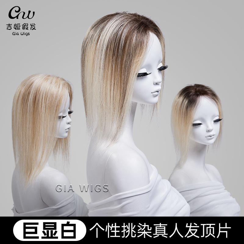 Giawigホワイトゴールドの頭上の本物のかつらの髪は髪を染めます。