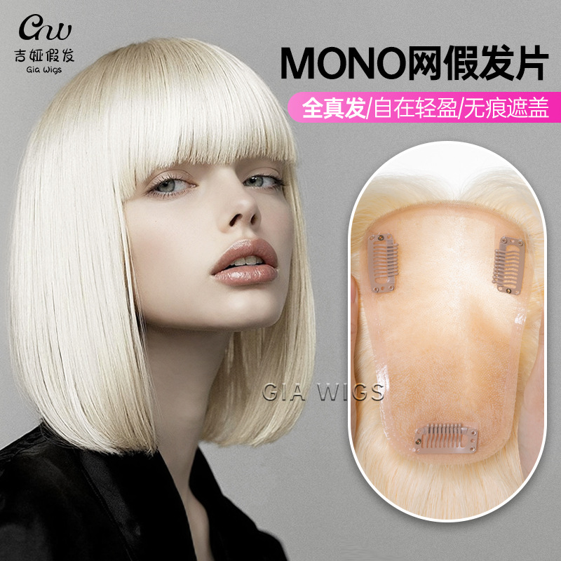 本物の髪の女性モノネットは、頭皮の頭の上に髪を隠して、ふわふわした頭の上に薄い通気性のかつらをシミュレートします。