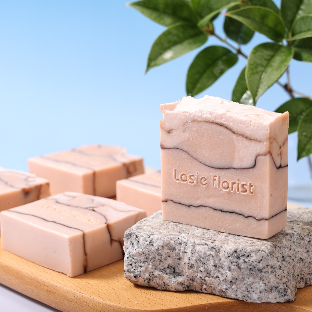 桜落菊蕊ミルクピーチ研磨石鹸 手作り石鹸 卸売 洗顔石鹸 ハーブエッセンシャルオイル石鹸 保湿 天然コールドプロセス