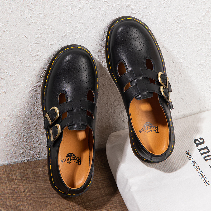2025シンプルT字ベルト大41本革ローヒールの小さい靴の女性英倫風ファッション学生カジュアル靴