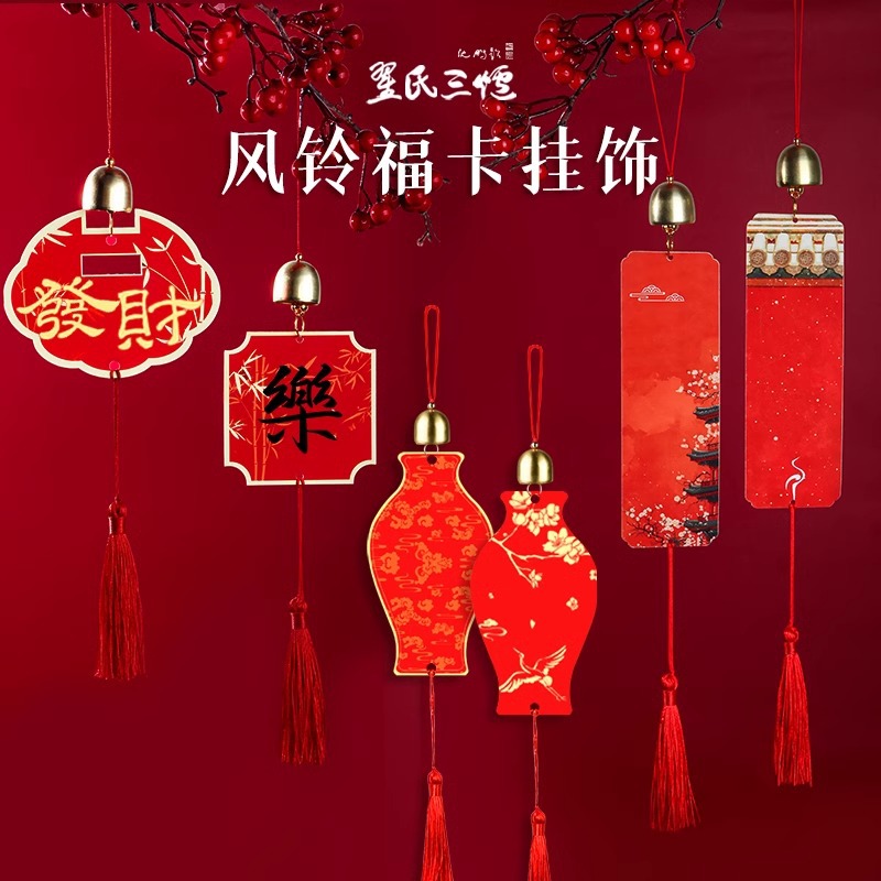 散金風鈴福カードストラップ飾り手書き文創風鈴空白福字紙書福字紙ワックス染福カード