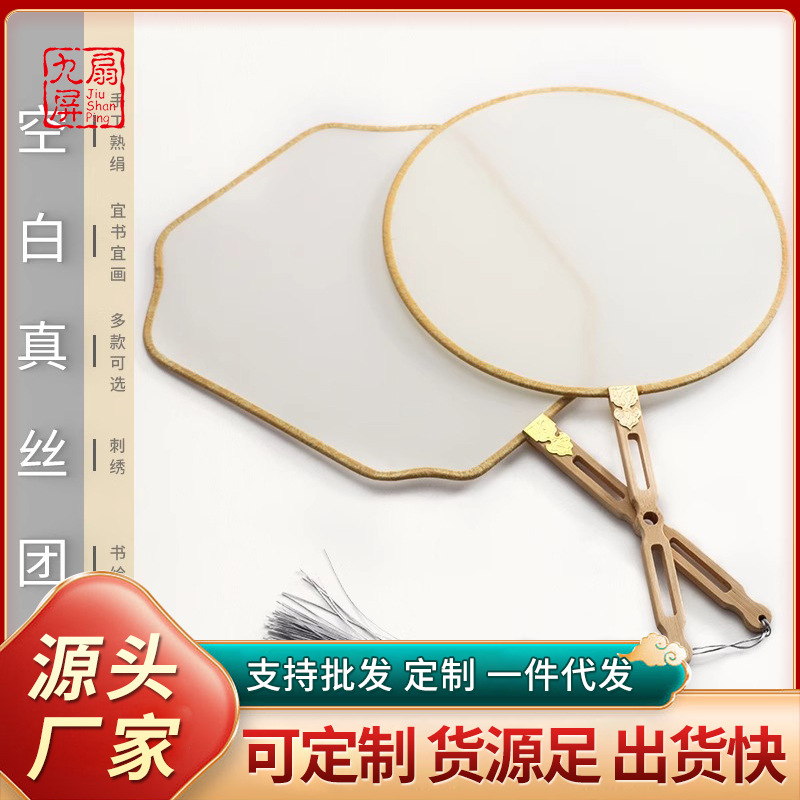 うちわの空白古風シルク熟絹芭蕉扇宮扇中国式絵画円古典中国風漢服扇子