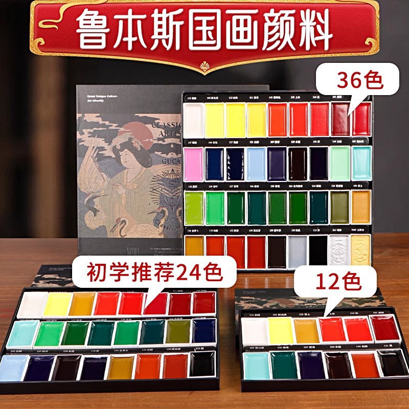 固体ルーベンス国画絵の具12色24色初心者セット用具セット中国画水墨画水彩画