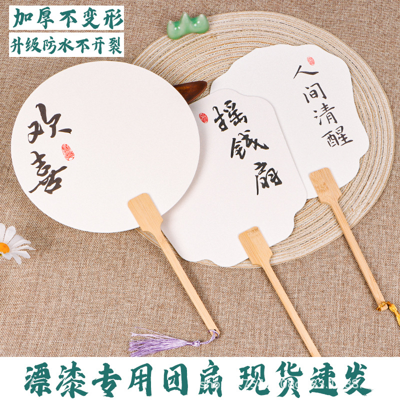 漆ファンインク江南素材パッケージフルセット diy 手作りブランクファンライスペーパーラウンドファン古代スタイル漆塗り紙ファン