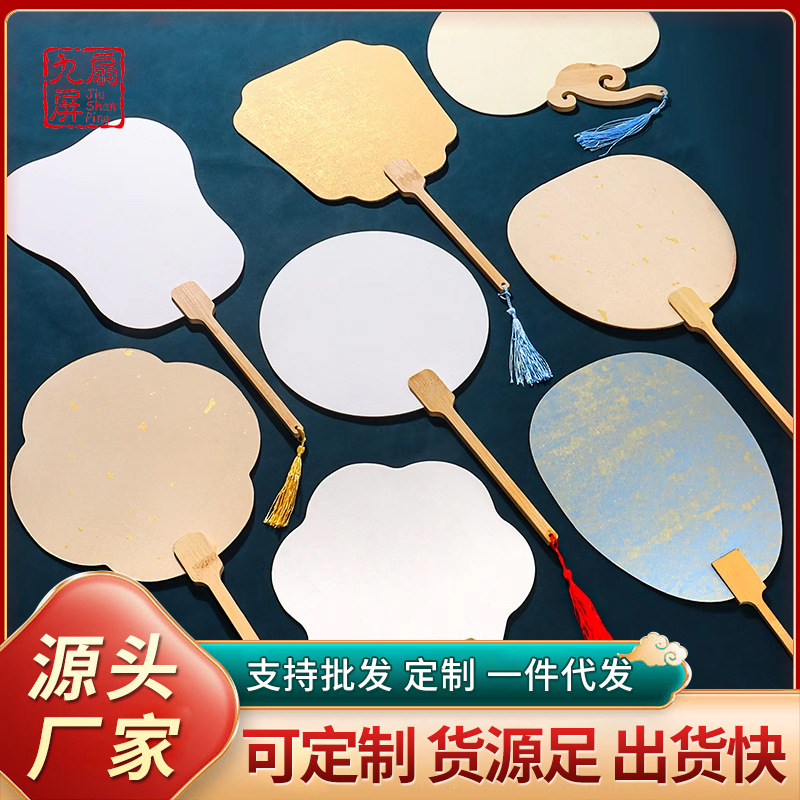 古風団扇宣紙団扇空白紙扇子半生熟白色カード面手絵画漆扇材料包紙扇