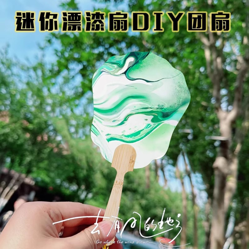 Q版非遺品漆扇ミニ団扇子供diy空白扇子大漆絵の具材料バッグ手作り漂着うちわ