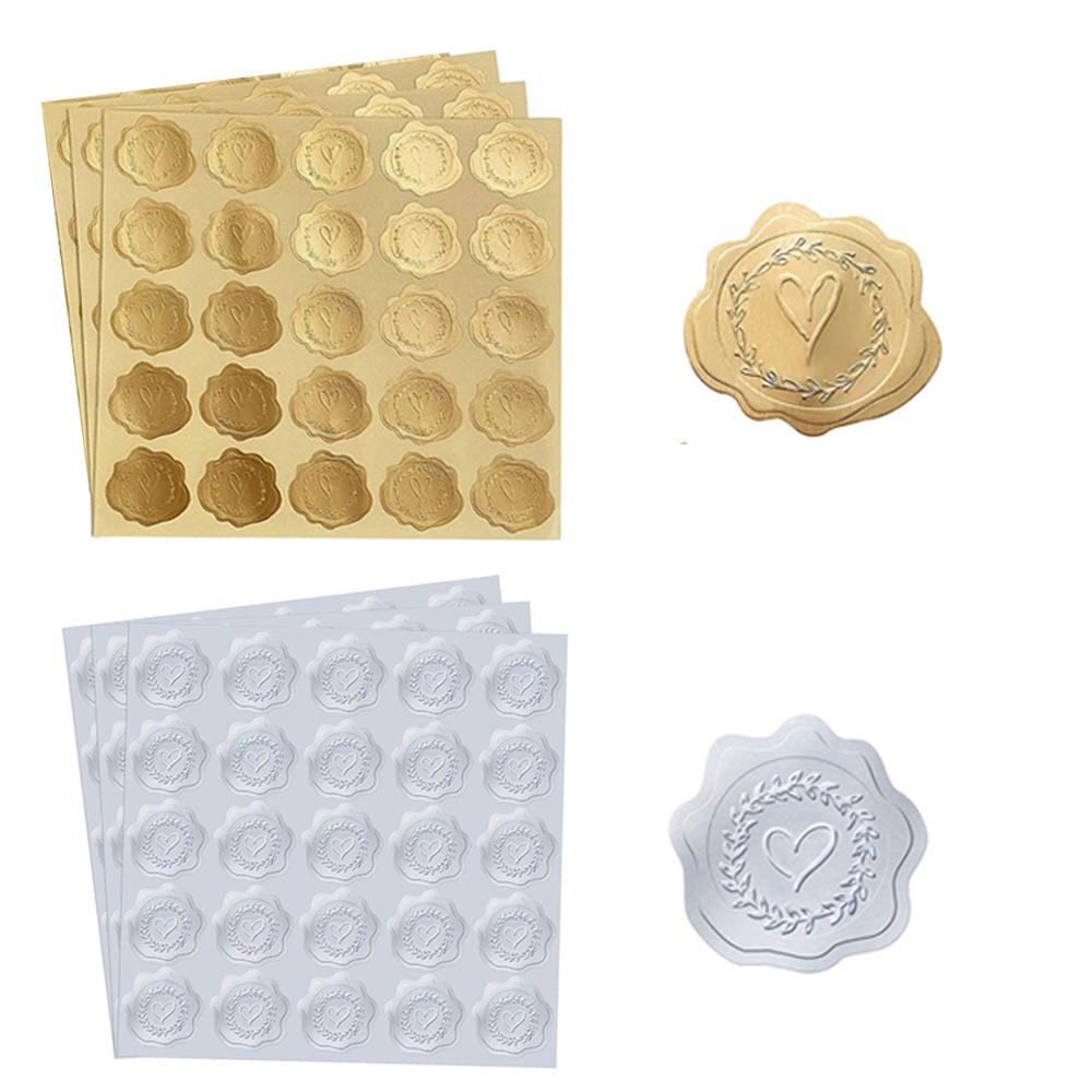 ホット販売シルバーゴールデンエンボスハート型凹凸粘着ステッカー招待状グリーティングカード装飾エンボスシールステッカー