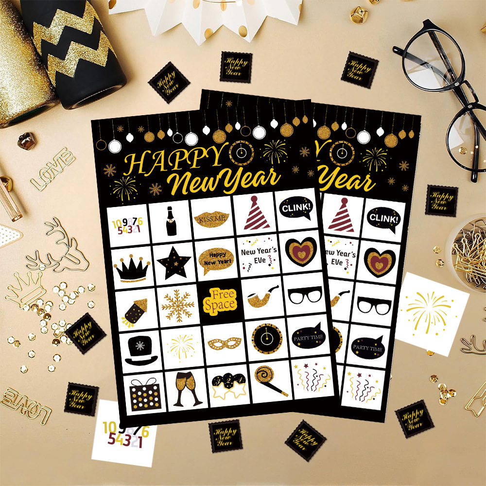 人気スポット家庭新年パーティーゲームHappy new year新年パーティービンゴカード