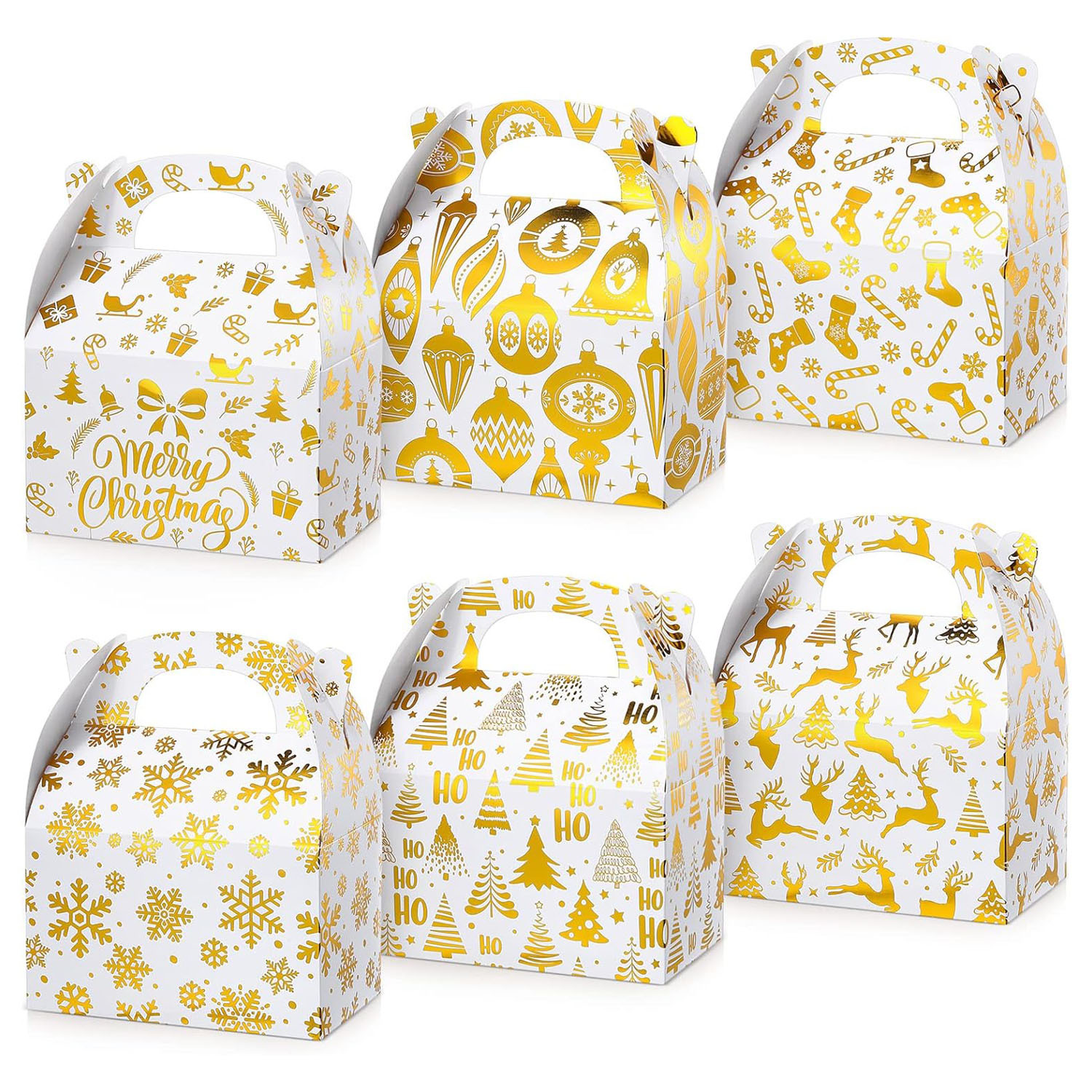 Amazon ホットセールホットスタンピング紙クリスマスギフトボックスパーティーギフト包装ボックスハンドル付きクリスマスキャンディボックス