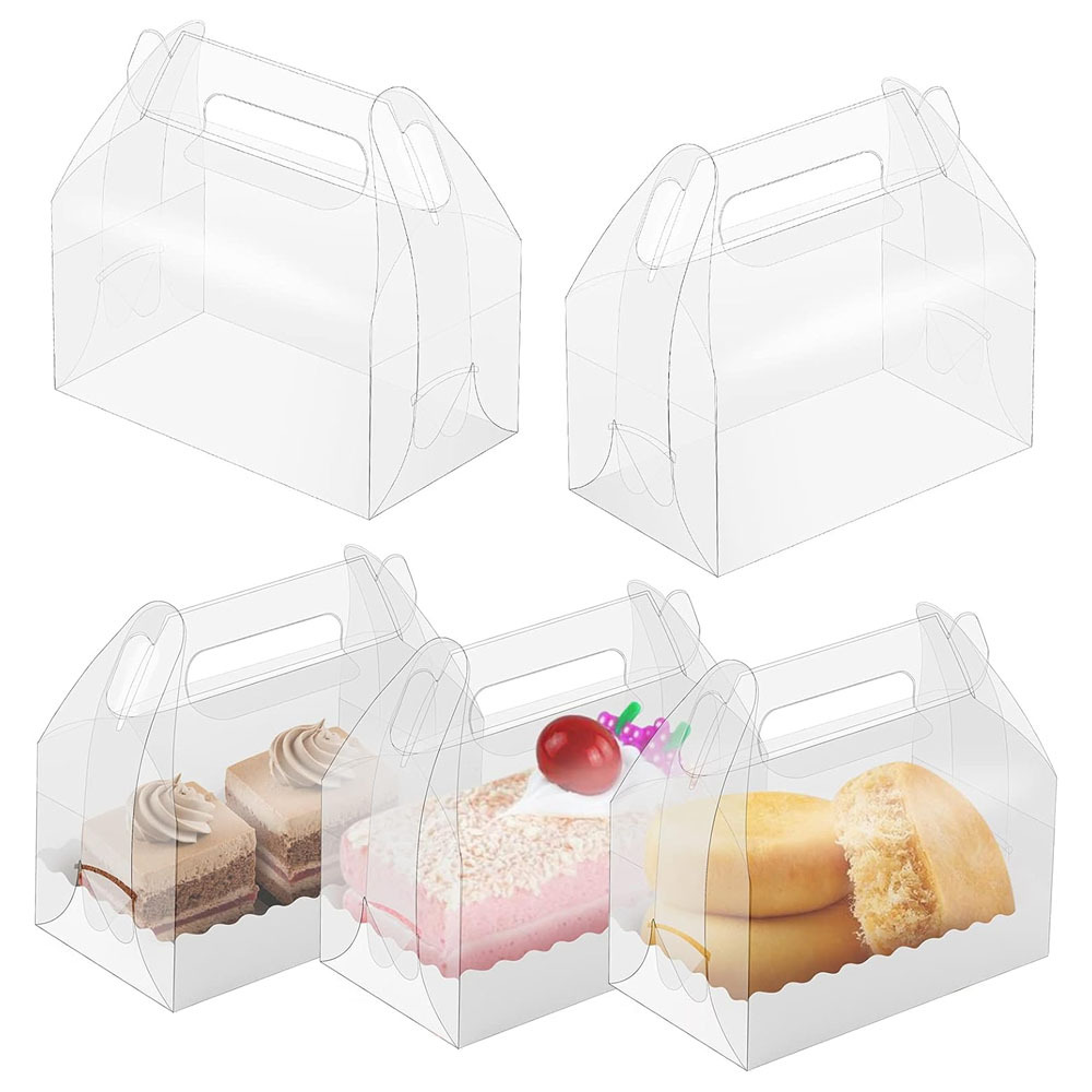 Amazon ベストセラー PET パーティー ポータブル キャンディ ケーキ ボックス 底トレイ付き 透明な傾斜トップ ベーキング ギフト ボックス