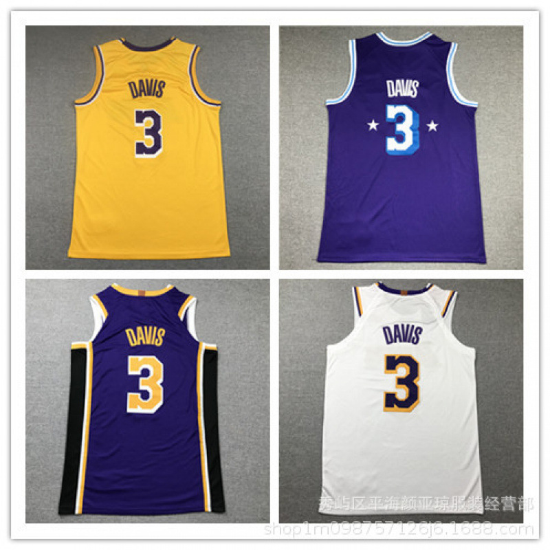 刺繍バスケットボールジャージ レイカーズ No.3 デイビス バスケットボールジャージ バスケットボールユニフォーム レイカーズジャージ