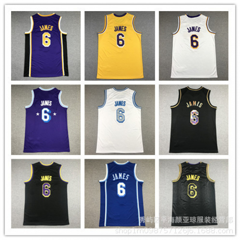 刺繍バスケットボールジャージ レイカーズ No.6 ジェームス バスケットボールジャージ バスケットボールユニフォーム レイカーズジャージ