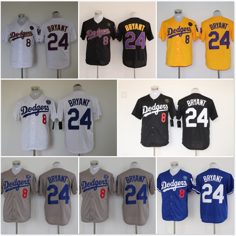 ドジャースファンバージョンボタン刺繍野球ユニフォームジャージゲームトレーニングスーツシャツ # 8 # 24T スリーブ ホワイト パープル