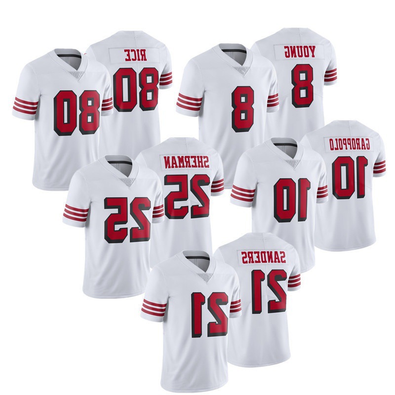 新しいジャージ 49ers # 10 Garoppolo 85 Kittle ホワイト レトロ刺繍ラグビー ユニフォーム 外国貿易
