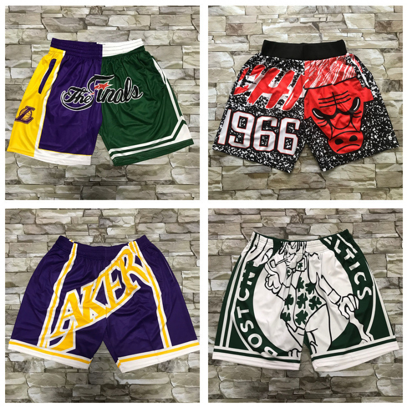 ボールパンツ卸売ロサンゼルスレイカーズレトロポケット刺繍ショーツ外国貿易スポット