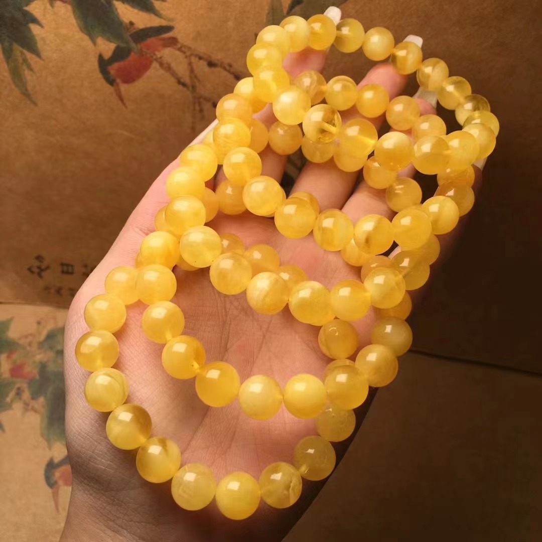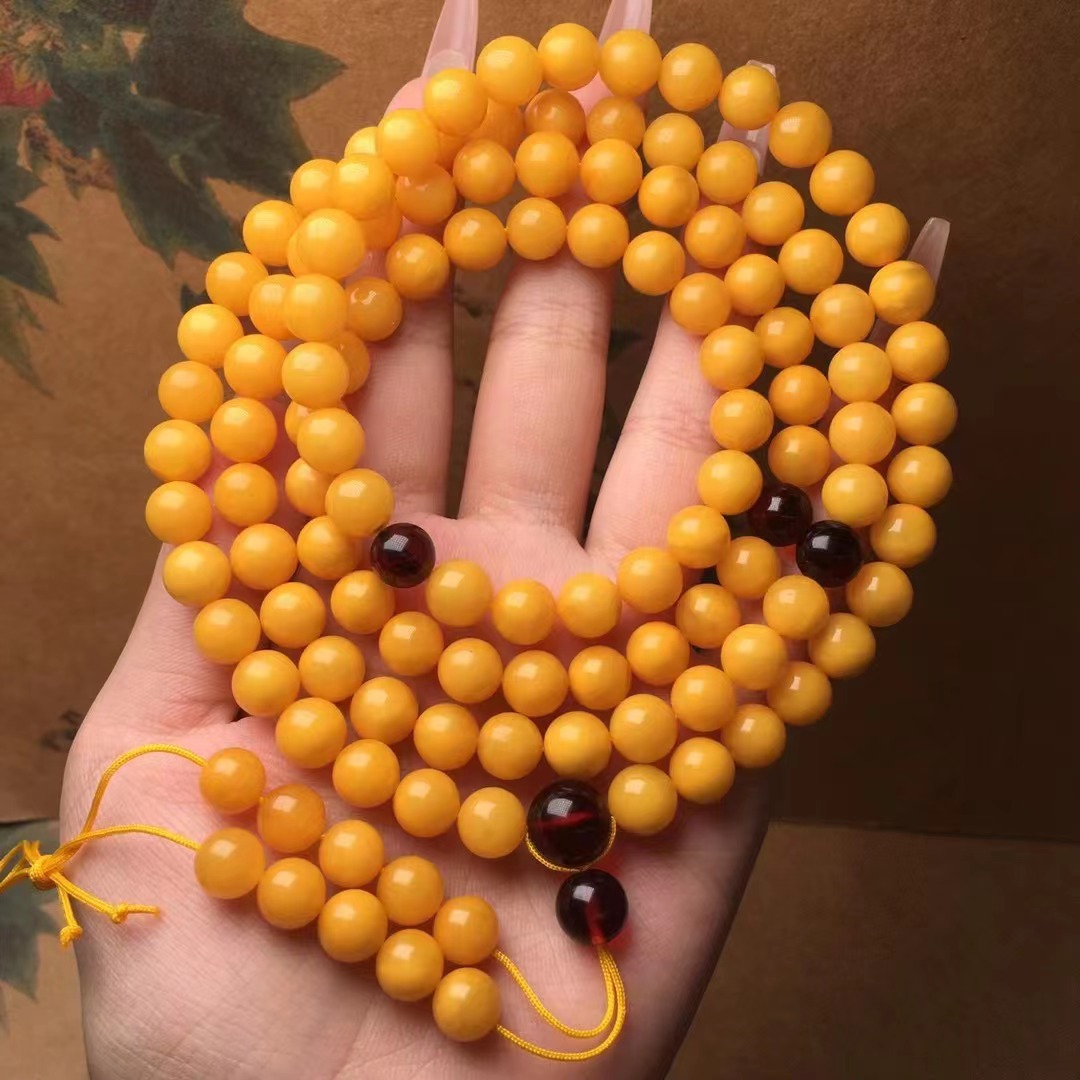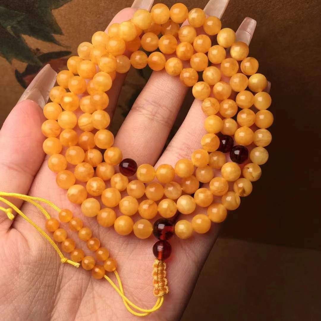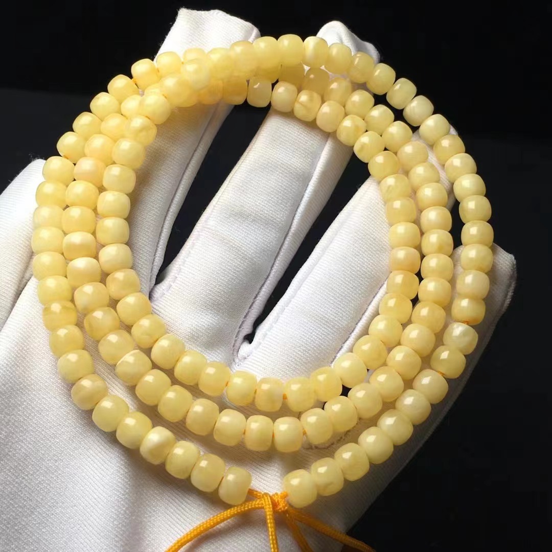 天然の古いミツロウ108仏珠蝋質が濃厚で、ブレスレットのネックレスがあります。