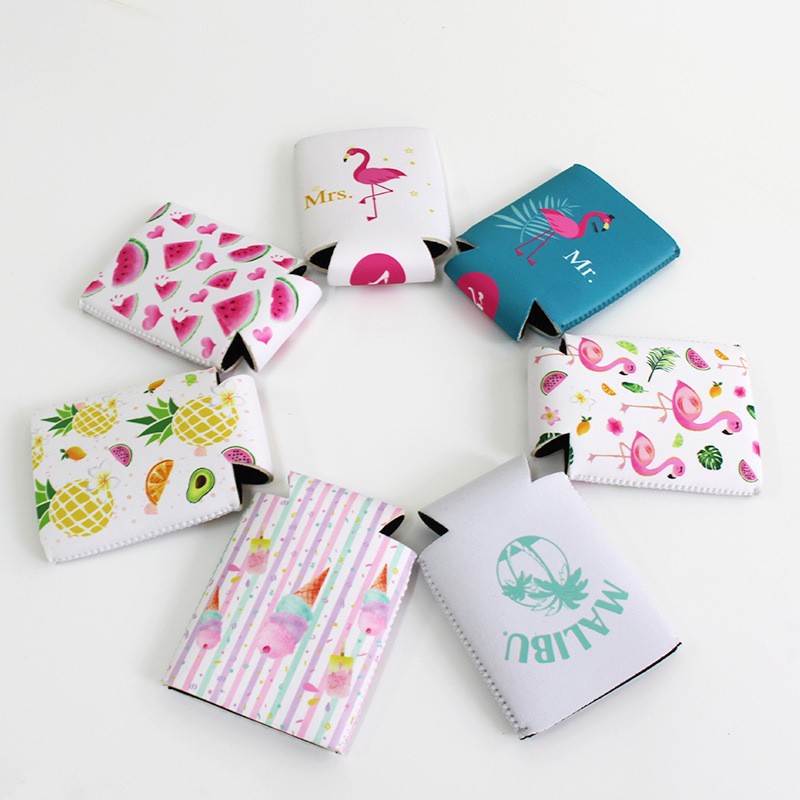 現品のネオプレンの保温コーラの底の虹のカップのカバーのフル版の熱転写のプリントのビールの潜水の材料のカップのカバー