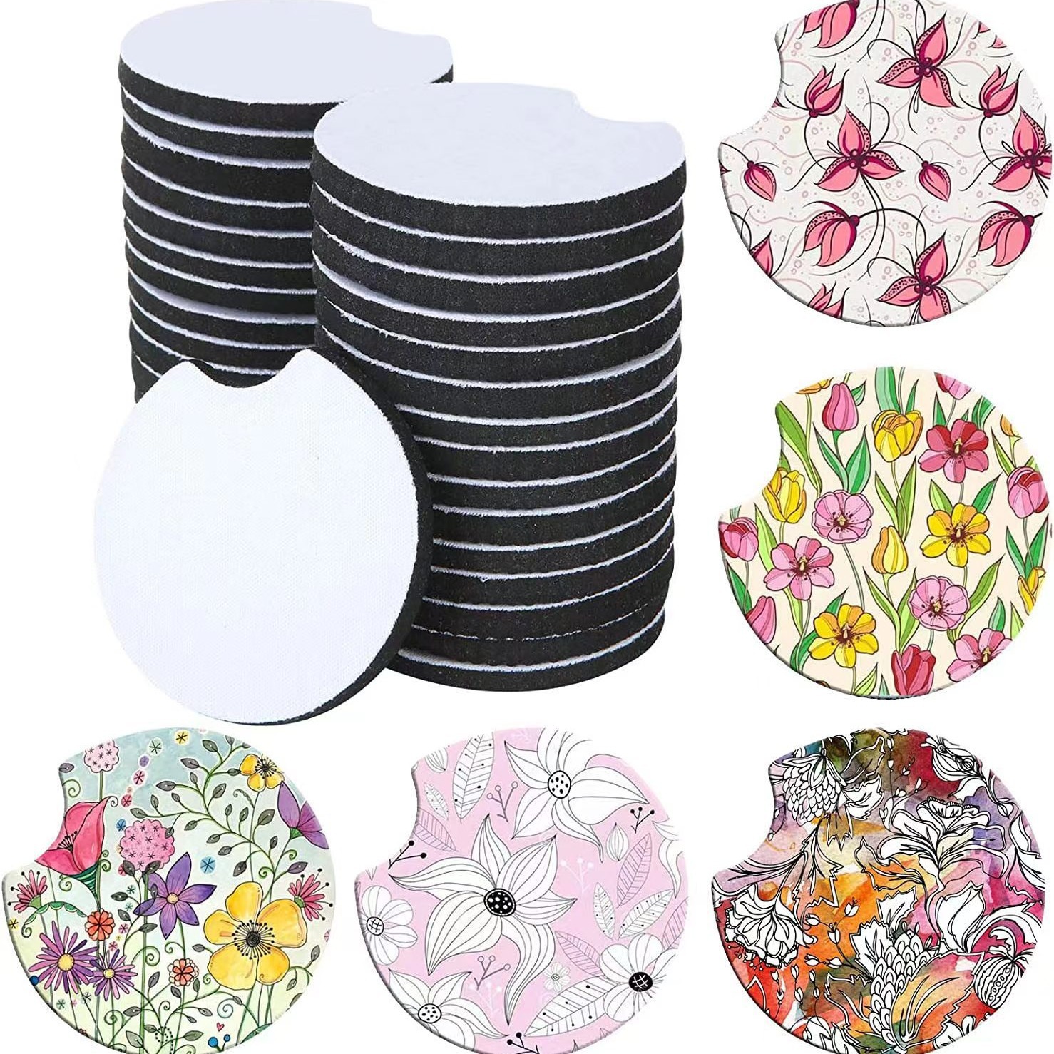空白の純色の自動車の水のコースターの潜水材料の円形の四角形のエンボスのプリントの車のコースターの熱転写のパッド
