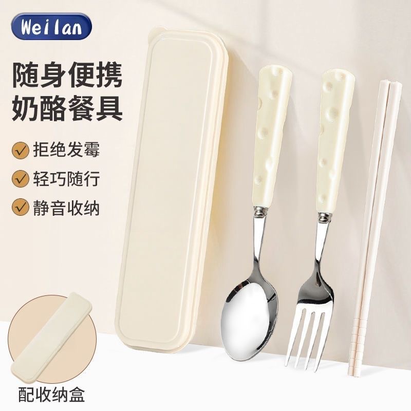 かわいいins風チーズステンレス製携帯食器箸・フォーク・スプーン学生用3点セット収納セット