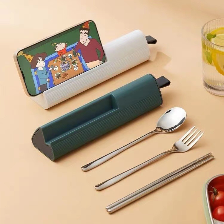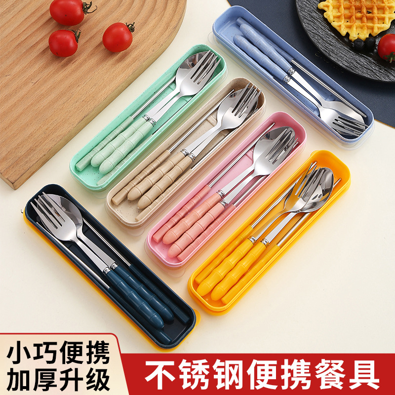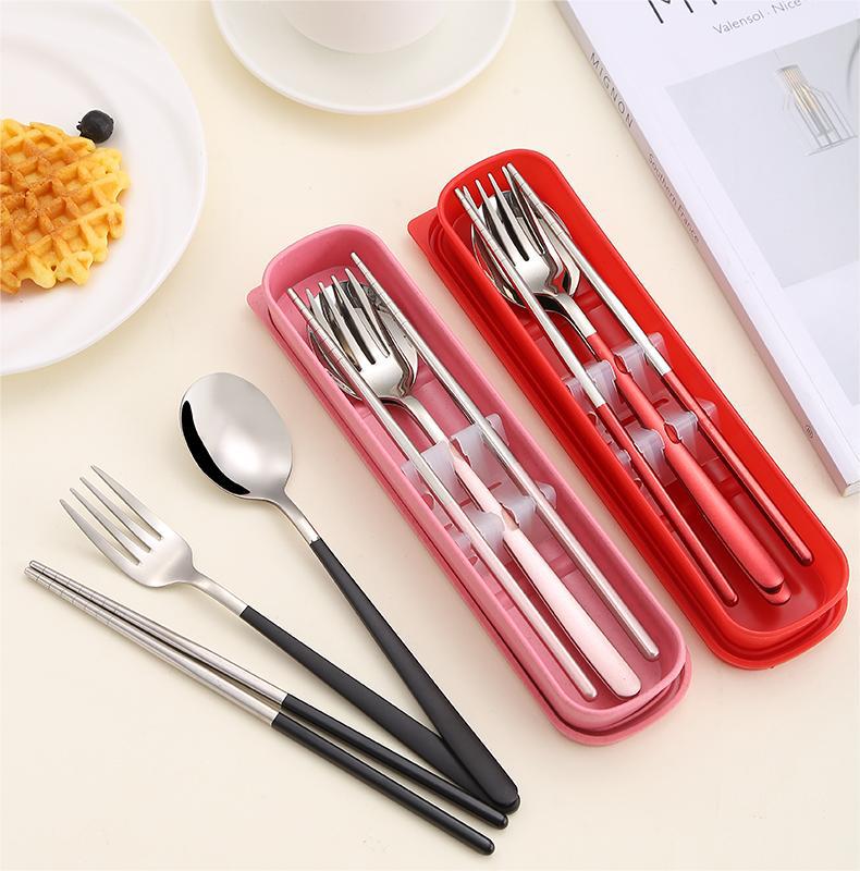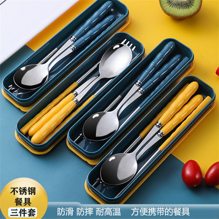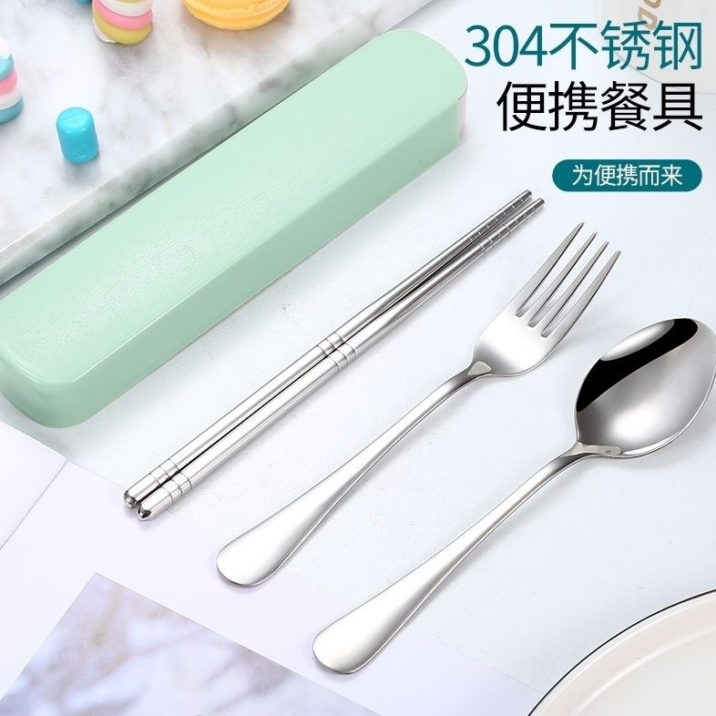304ポータブルステンレス3点セット箸スプーンフォーク学生屋外旅行ギフト携帯食器セット