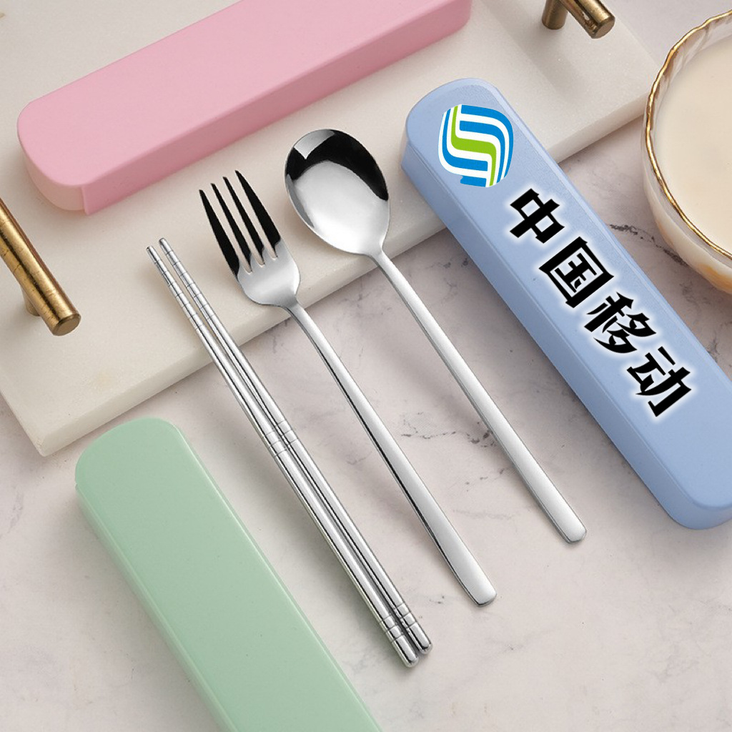 ステンレス食器フォーク箸スプーン携帯食器学生食器3点セットアウトドアプレゼント印刷ロゴ