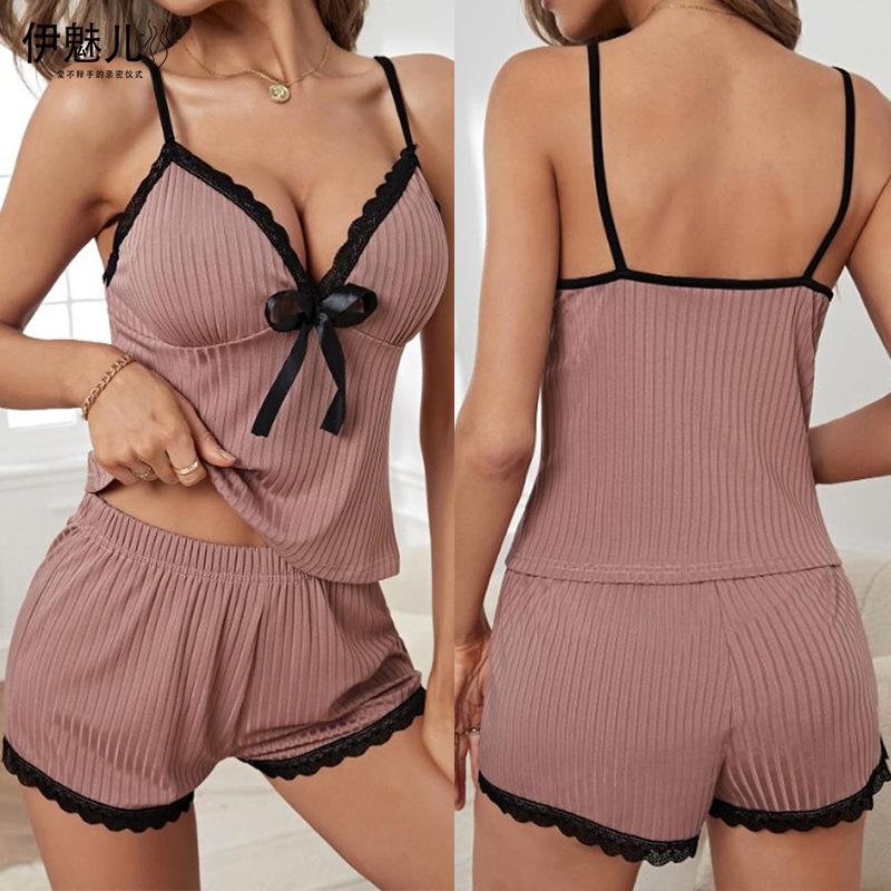 2024クロスボーダー夏新作セクシーレースキャミソールパジャマレディース外着スリム2点セットホーム