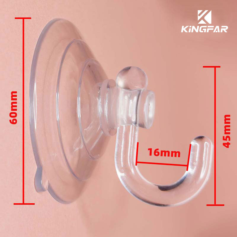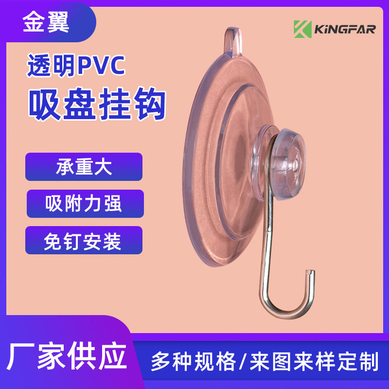 クロスボーダー卸売60mmダブルフックpvc吸盤フック大型透明フック吸盤穿孔吸盤金属フック付き