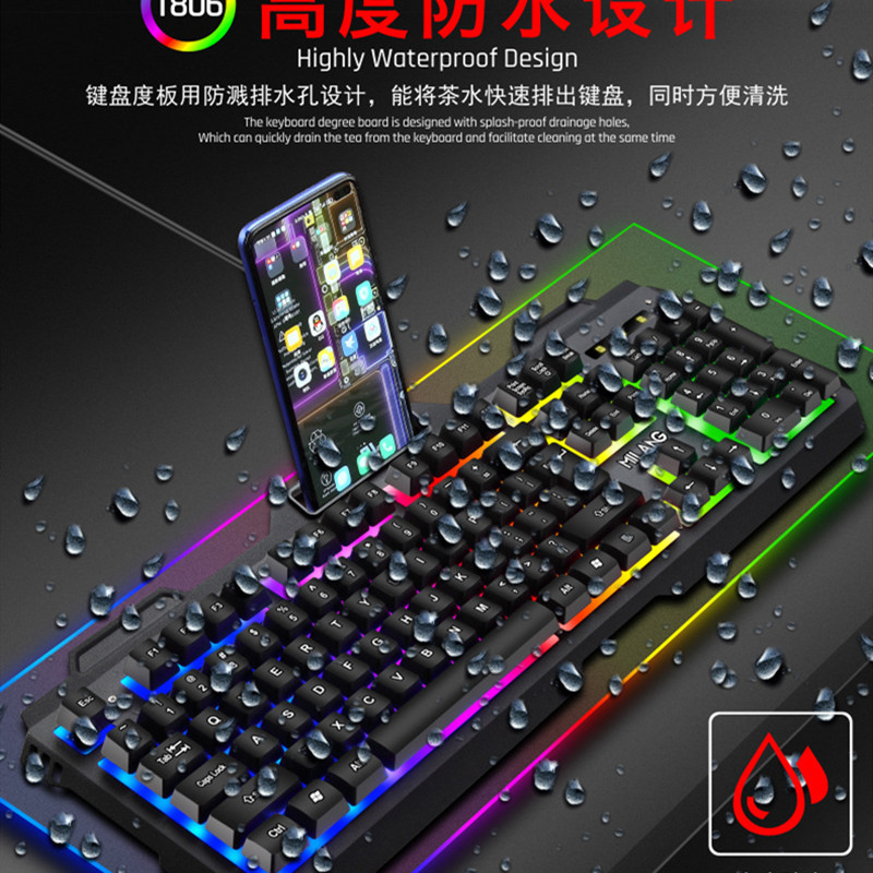 卸売t806金属鉄板機械手触りゲームキーボードマウスセット有線カラフル発光浮上キーキャップ