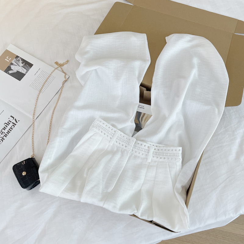 オールドマネースタイルの白い中空スプライシングレースウエストイミテーションリネンカジュアルパンツ、女性用、怠惰なハイウエスト、スリム、ワイドレッグ、夏