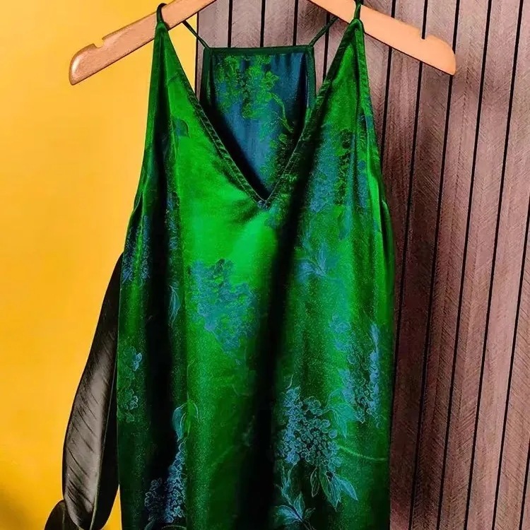 カウンター撤収ラストオーダー中国風Vネックゴールドジャカードキャミソールレディースホルターネックインナーとアウタートップ新スタイル