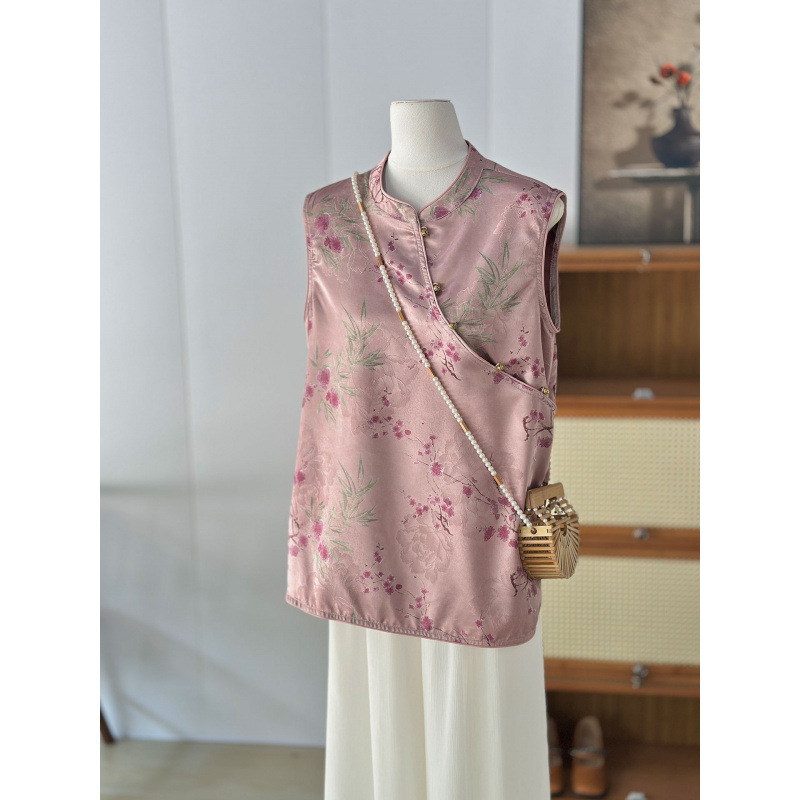 ハイエンドの新しい中国風のピンクのノースリーブベストミドル丈のデイリー婦人服中国風のオードチャイナスタイルトップ