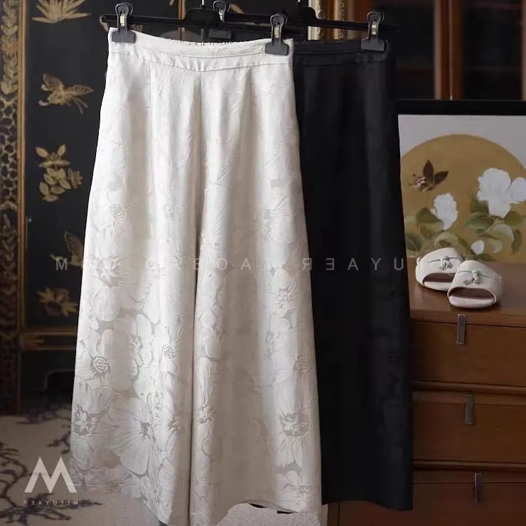 カウンターで最終注文を取り消し、シルキータッチの中国風ダークパターンジャガードハイウエストワイドレッグ7-8点ワイドレッグキュロットを手に入れました