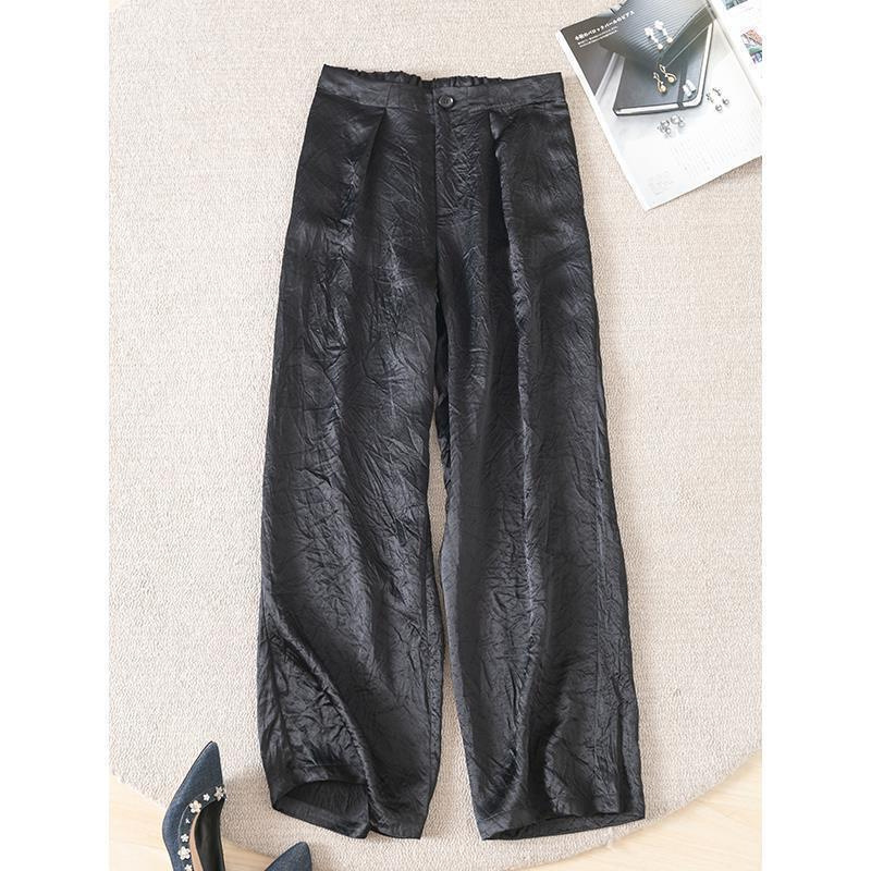 夏用女性用ワイドレッグパンツ、薄手の新しいホットスタイル、ハイウエストドレープスーツパンツ、テクスチャードクール日焼け止めアイスシルクパンツ