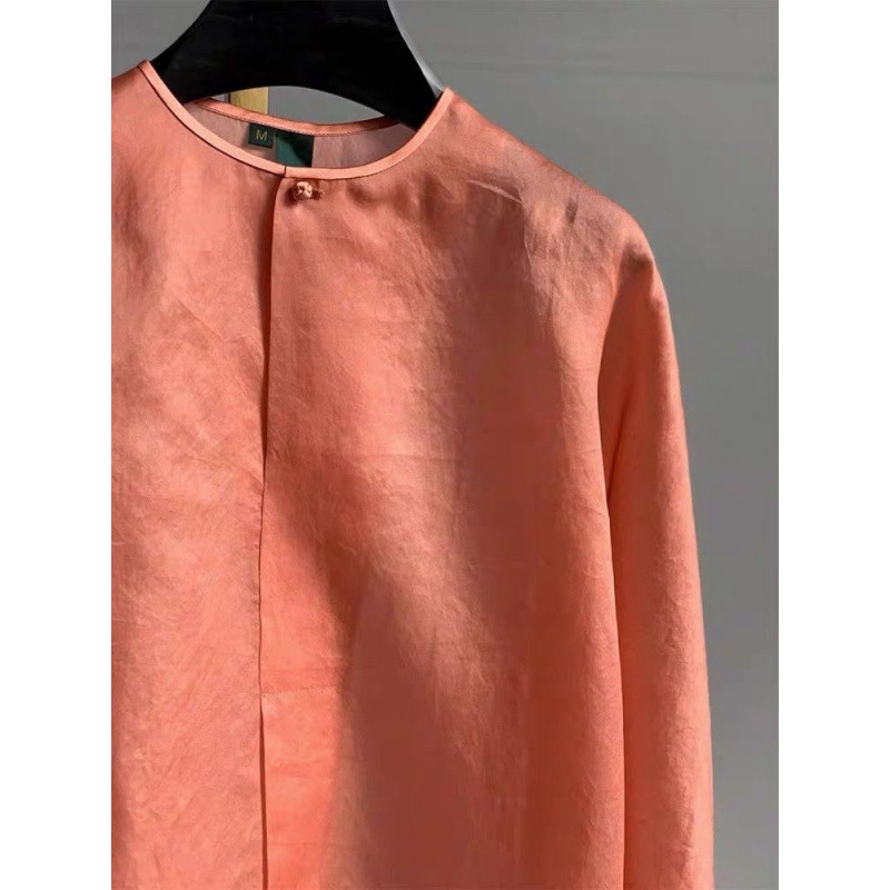 新しい中国風オレンジ模造根糸ルーズシャツ女性用ヨーロッパ製ライト高級禅トップス春と夏の国民風トップス女性用トレンディ