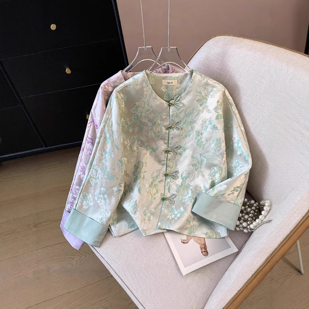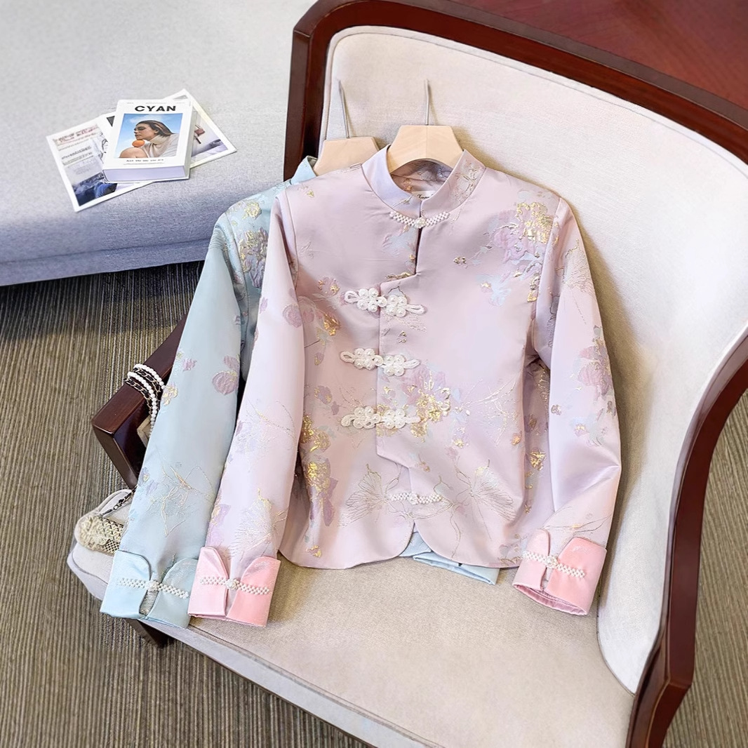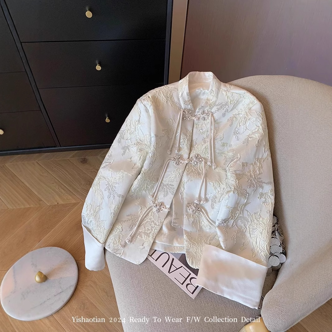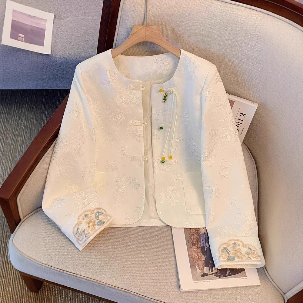 新中国式国風改良漢服盤バックルジャカード錦重工刺繍長袖カーディガン女性コート秋冬新作